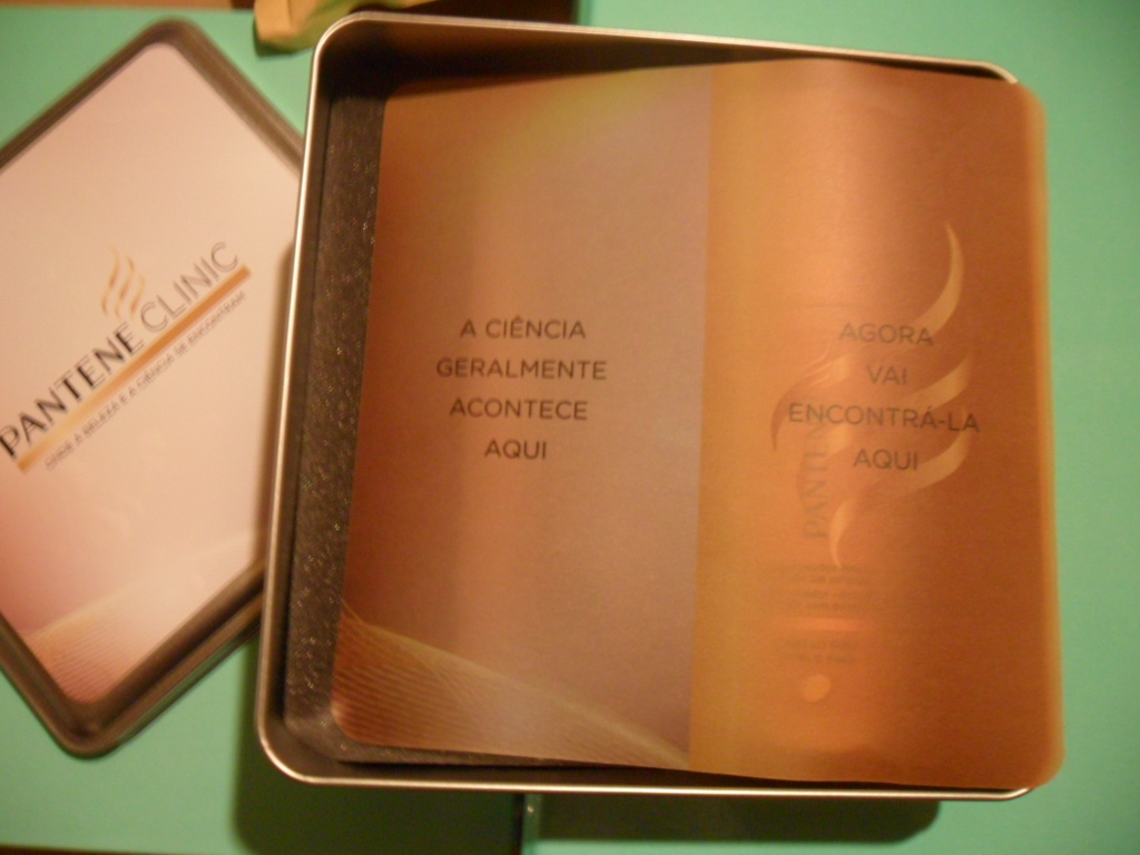 Um press kit da Pantene Clinic, a rede global de centros de investigação Pantene Pro-V. Contam eles que utilizam "todo o tipo de investigação de ponta, nomeadamente tecnologia desenvolvida pela Nasa, métodos galardoados com Prémio Nobel e outras técnicas de vanguarda para estudar o cabelo e desenvolver novos produtos". A caixa deixou-me super curiosa. A parte da Nasa também.